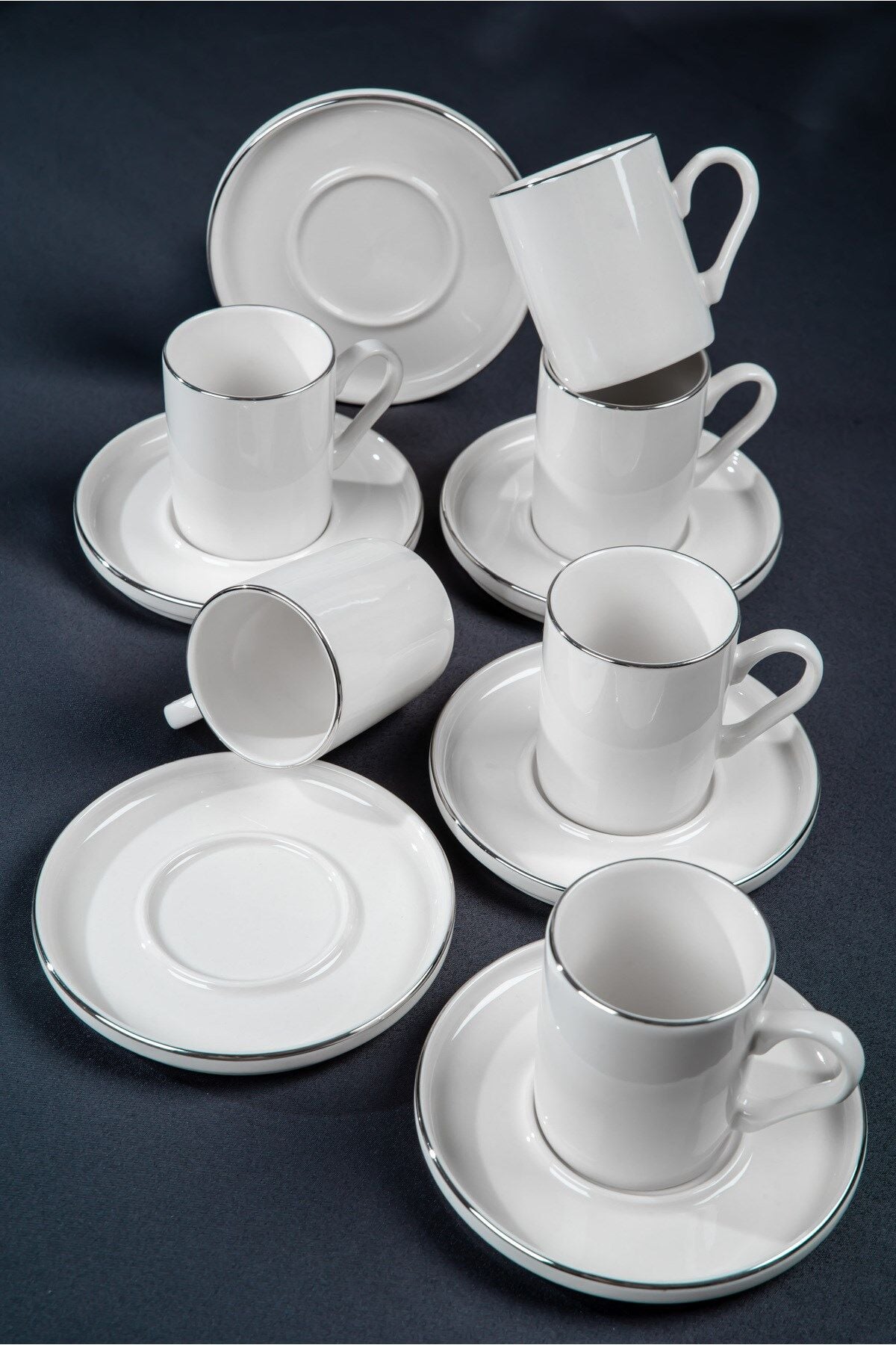 Sadelik ve Estetik Buluşuyor... ; Gerçek Beyaz Altın ; Porselen Kahve Takımı içeriği: ; 6 Adet 6 cm Kahve Fincanı ; 6 Adet 12 cm Kahve Tabağı ; Bulaşık makinesinde düşük sıcaklıklarda ve kısa programlarda yıkanmalıdır ;