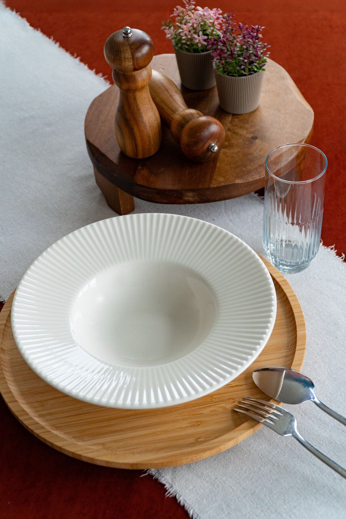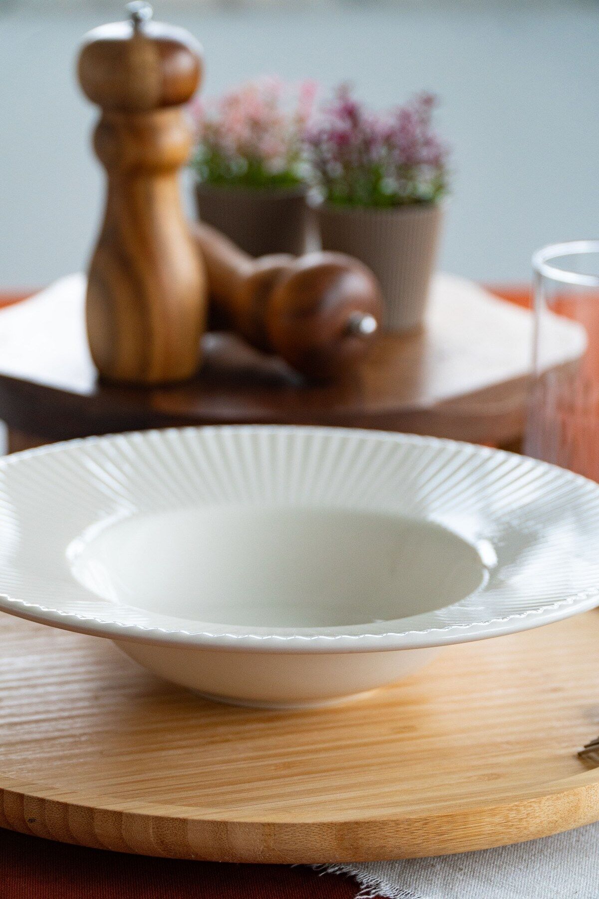 - Yüksek kaliteli porselen malzemeden üretilmiş, uzun ömürlü kullanım sunar.; - Modern tasarımıyla mutfaklarınıza şık bir dokunuş katar.; - Beyaz rengi ve yuvarlak şekliyle her türlü sofra düzenine kolayca uyum sağlar.; - BPA içermeyen yapısıyla sağlığınızı düşünerek tasarlanmıştır.; - 27 cm çapındaki geniş yüzeyi, bol miktarda makarna veya garnitür için idealdir.; - Tek ebat seçeneğiyle pratik ve kullanışlı bir seçenektir.; - Bulaşık makinesinde kolayca yıkanabilir özelliği sayesinde temizliği zahmetsizdir.; - Gıda temas sembolü ile güvenle kullanabilirsiniz.; - Türkiye'de üretilmiş olup yerel kaynaklardan elde edilmiştir.
