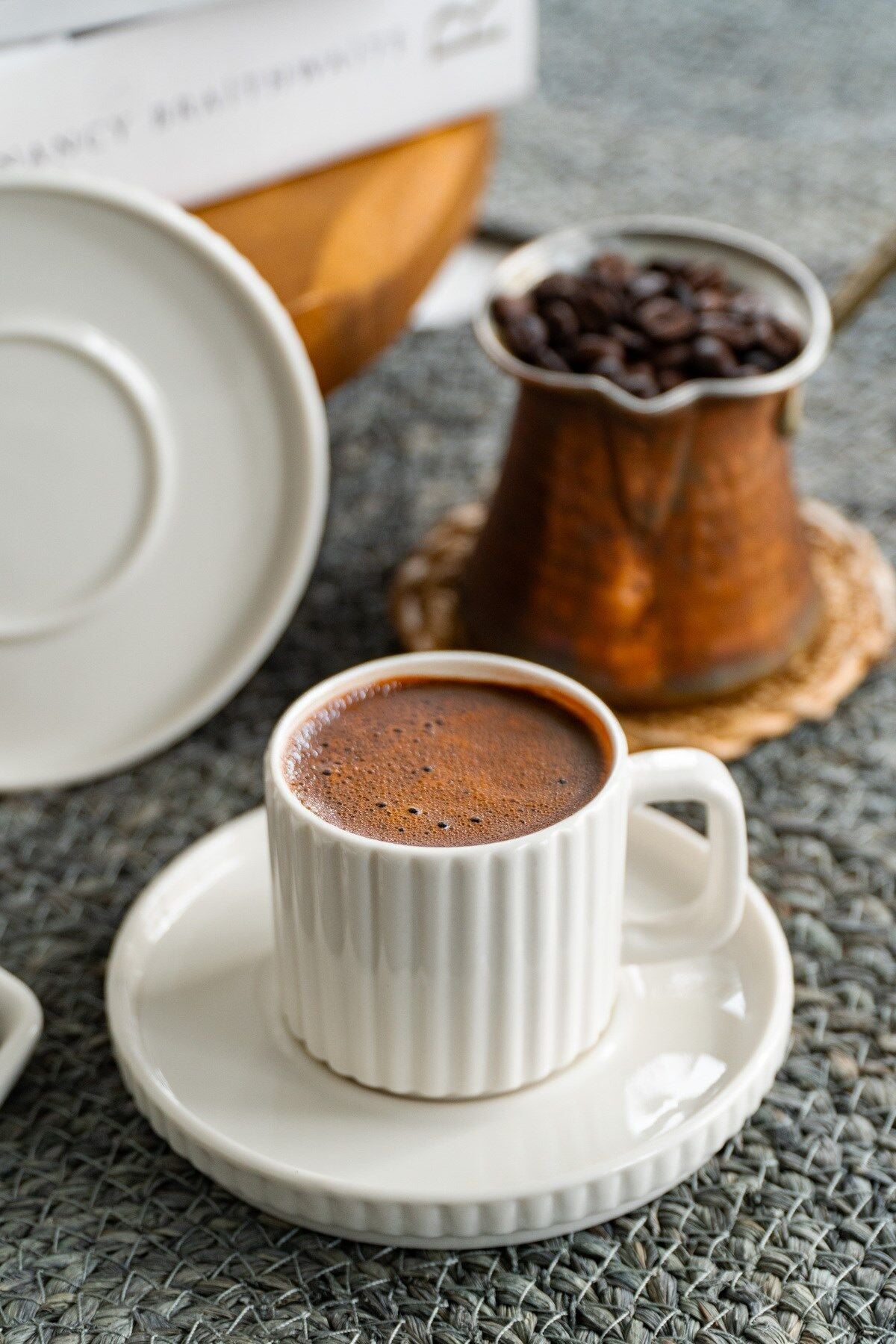 - Modern tasarımıyla dikkat çeken Satürn 4 Parça 2 Kişilik Porselen Kahve Fincan Takımı, 6 kişilik set halinde sunulmaktadır.; - Her bir fincan 100 ml hacmiyle ideal kahve servisi için uygundur.; - Porselen malzemesi sayesinde uzun ömürlü ve dayanıklı kullanım sağlar.; - Beyaz rengiyle her türlü mutfak dekorasyonuna kolayca uyum sağlar.; - Türk malı olan bu fincan takımı, yerli üretim gururunu sofralarınıza taşır.;