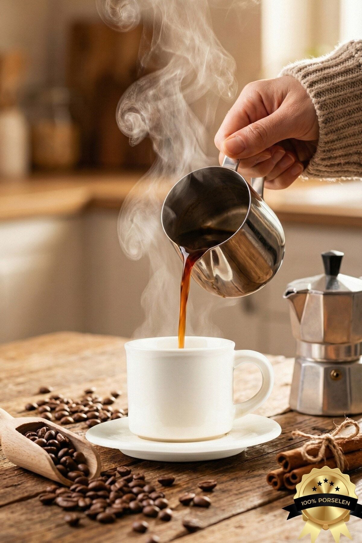 - Modern tasarımıyla dikkat çeken 2 kişilik porselen kahve fincan takımı, beyaz rengiyle şıklığı sofranıza taşır.; - 4 parça set halinde sunulan bu fincan takımı, her bir parçası 80 ml hacme sahiptir ve ideal kahve servisi için uygundur.; - TR menşeli ürün, yerli üretim kalitesiyle güvenle tercih edilebilir.; - Porselen malzemesi sayesinde uzun ömürlü kullanım ve dayanıklılık sunar.; - Minimalist tasarımı ve zamansız duruşu ile öne çıkan Tas Fincan, kahve deneyimini daha keyifli hâle getirmek için özel olarak üretilmiştir.; Tamamen porselen yapısı sayesinde sıcaklığı ideal seviyede korur, içim sırasında aromanın en doğal hâliyle hissedilmesini sağlar.; Yuvarlak hatları, elde rahat tutuş sağlayan ergonomik kulbu ve mat-parlak geçişli zarif yüzeyi ile hem günlük kullanıma hem de misafir sunumlarına mükemmel uyum sağlar.; Espresso, Türk kahvesi ve kısa kahve çeşitleri için ideal ölçüdedir.; Modern sofralara şıklık katan bu fincan, sade estetiği sevip kalite arayanlar için vazgeçilmez bir parçadır.; Dayanıklı porselen yapısı uzun yıllar ilk günkü şıklığını korur.; Sadelikten gelen şıklığı keşfedin; kahve keyfinize modern bir dokunuş katın.; ☕✨
