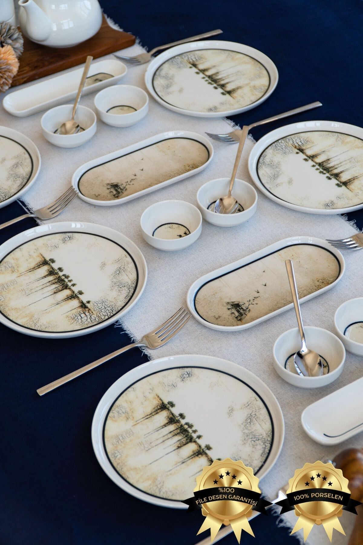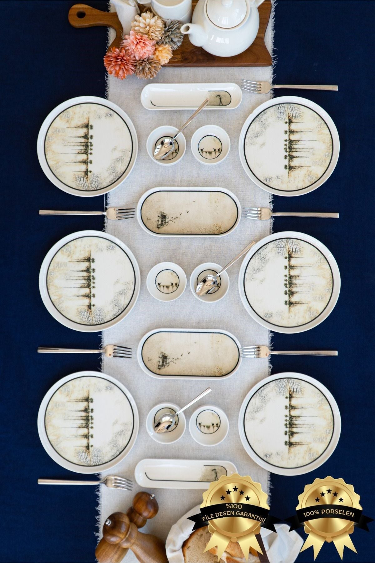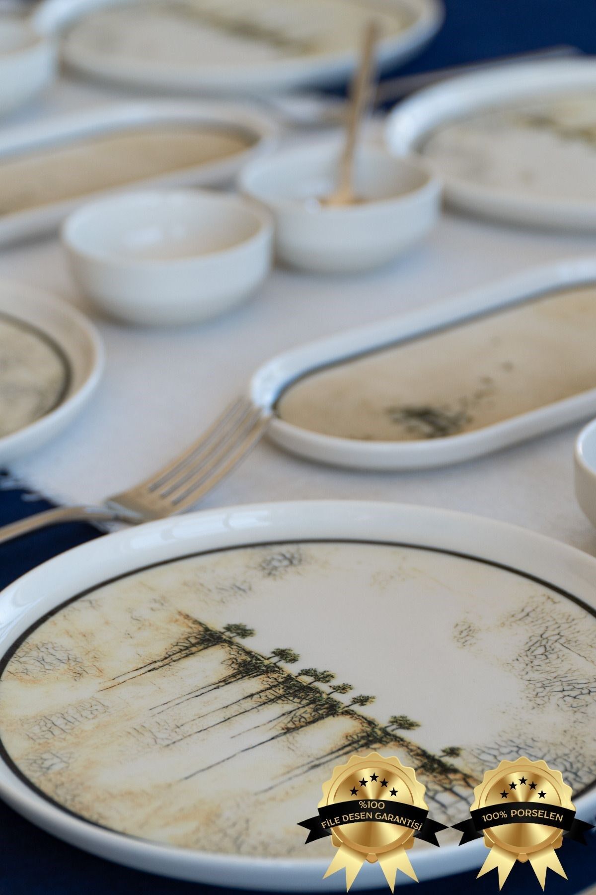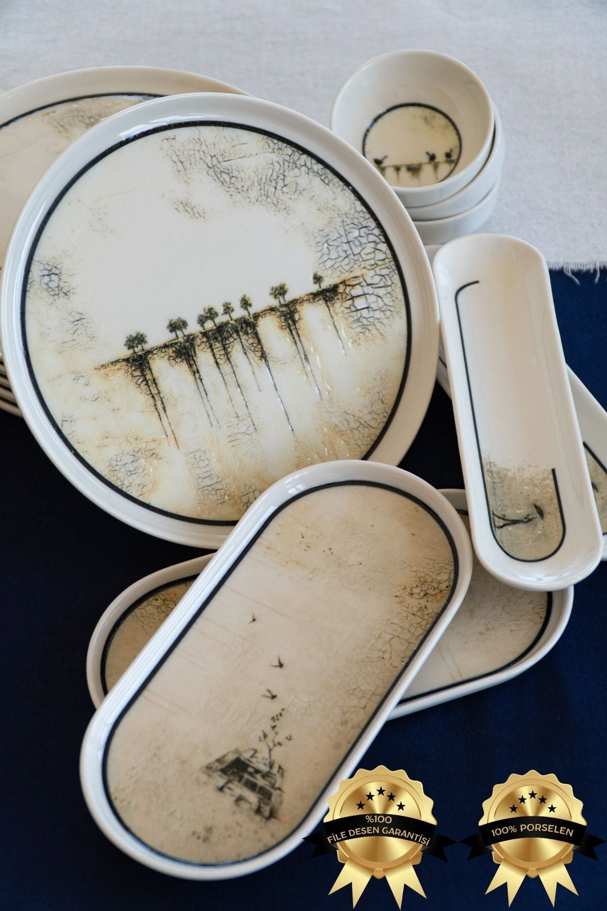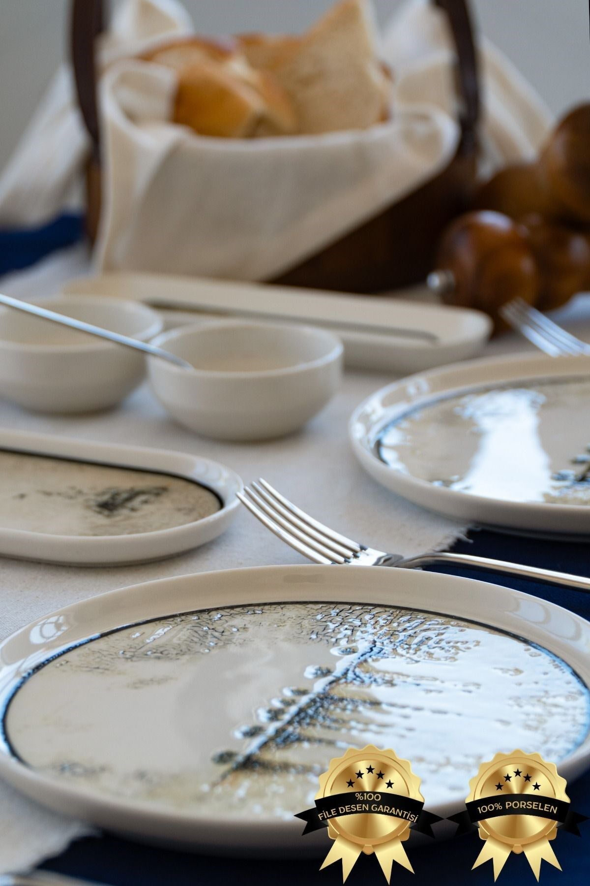 - 6 kişilik geniş kapasitesiyle, aile ve arkadaşlarınızla keyifli kahvaltı sofraları kurmanızı sağlar.; - Yüksek kaliteli porselen malzemesi sayesinde uzun ömürlü kullanım sunar ve dayanıklılığı artırır.; - BPA içermeyen yapısıyla sağlığınızı düşünerek tasarlanmıştır; güvenle kullanabilirsiniz.; - Modern tasarımıyla mutfak dekorunuza şık bir dokunuş ekler ve güncel trendleri yansıtır.; - Yerli üretim olmasıyla yerel sanatçıların emeğini destekler ve kültürel mirası korur.; - Yuvarlak şekliyle geleneksel kahvaltı sofralarına modern bir alternatif sunar; estetik görünümüyle dikkat çeker.; - 16 parçadan oluşan set içeriğiyle ihtiyacınız olan her şey tek pakette; ekstra parça ihtiyacını ortadan kaldırır.; - Ürünümüz 6 parça 21 cm Servis, 6 parça 08 cm Reçellik, 2 adet 21 cm Kayık, 2 adet 20 cm Zeytinlik'ten oluşmaktadır.