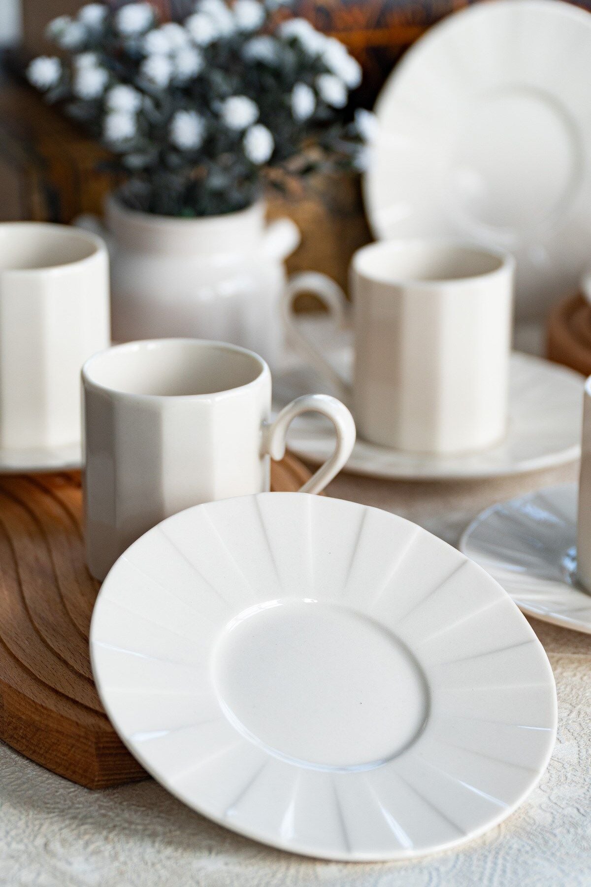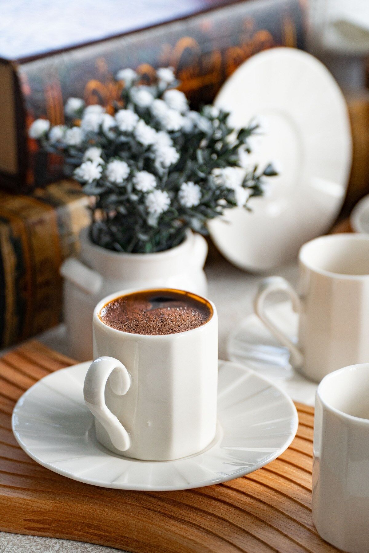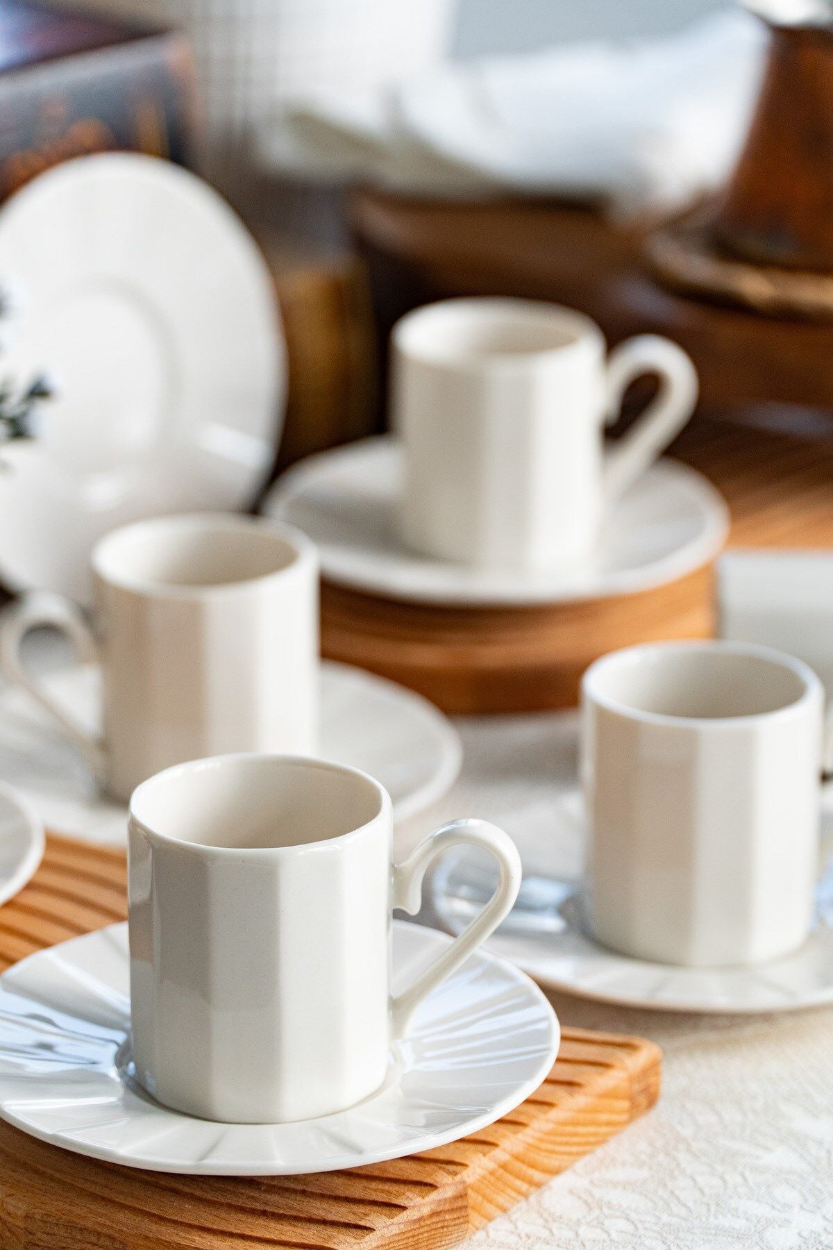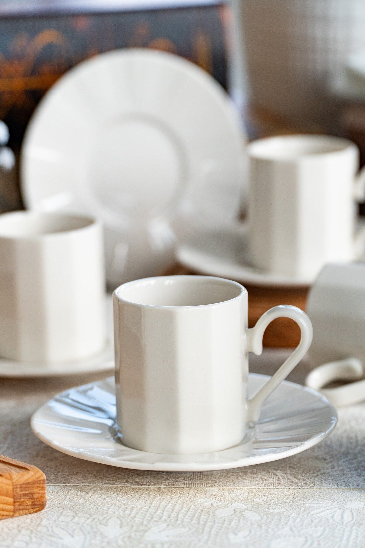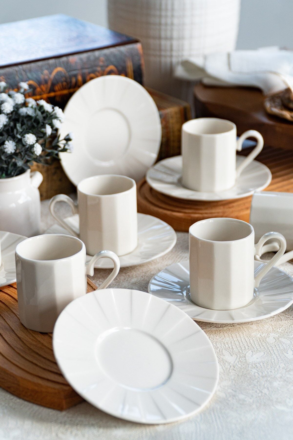 - Modern tasarımıyla dikkat çeken Zümrüt kahve fincan takımı, kırık beyaz rengiyle şıklığı sofralarınıza taşır.; - 6 kişilik geniş kapasitesiyle aile ve arkadaşlarınızla keyifli kahve saatleri geçirmenizi sağlar.; - Her bir fincan 100 ml hacme sahip olup, ideal kahve miktarını sunar.; - Porselen materyali sayesinde dayanıklılık ve uzun ömürlü kullanım vaat eder.; - 12 parça set içeriğiyle tam bir kahve seti deneyimi yaşatır; fincanlar, tabaklar ve daha fazlasını içerir.; - Beyaz web rengi ile modern ve zarif bir görünüm sergiler, her türlü sofra düzenine kolayca uyum sağlar.; - Türkiye menşeli olmasıyla kalite ve yerel üretimden yana tercihinizde ön plana çıkar.;