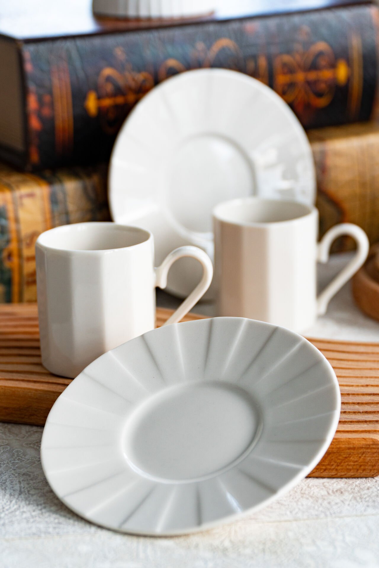 Sadelik ve estetik buluşuyor... ; ; 2 adet 6 cm kahve fincanı ; 2 adet 12 cm kahve tabağı ; Bulaşık makinesinde düşük sıcaklıklarda ve kısa programlarda yıkanmalıdır. ;
